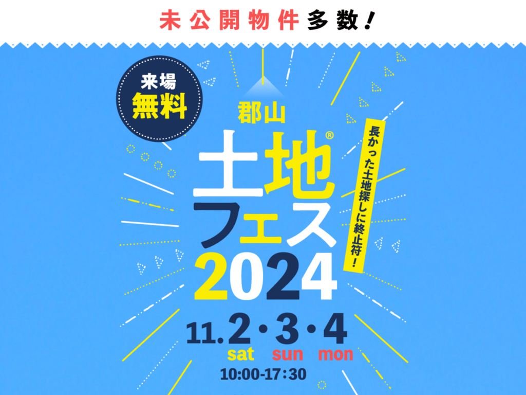 | タイトル | 郡山展示場 土地フェス®2024 会場:クリナップ郡山ショールーム |