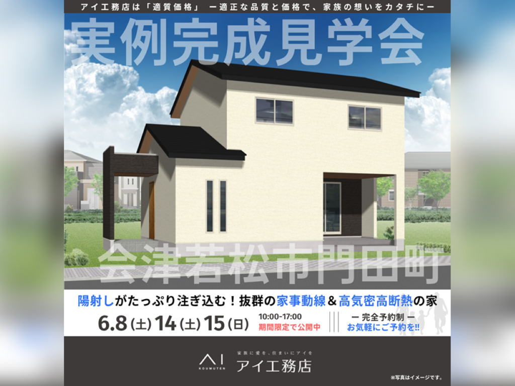 アイ工務店が会津若松市内で行う最初の完成見学会です♪家づくりをご検討中の方は必見です!