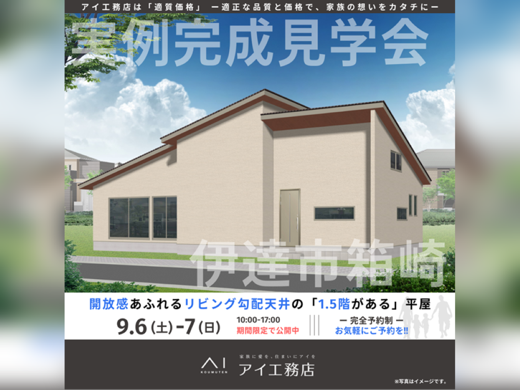 伊達エリアで初開催!アイ工務店が得意とする、大人気の1.5階建て・約30坪の平屋は必見です★