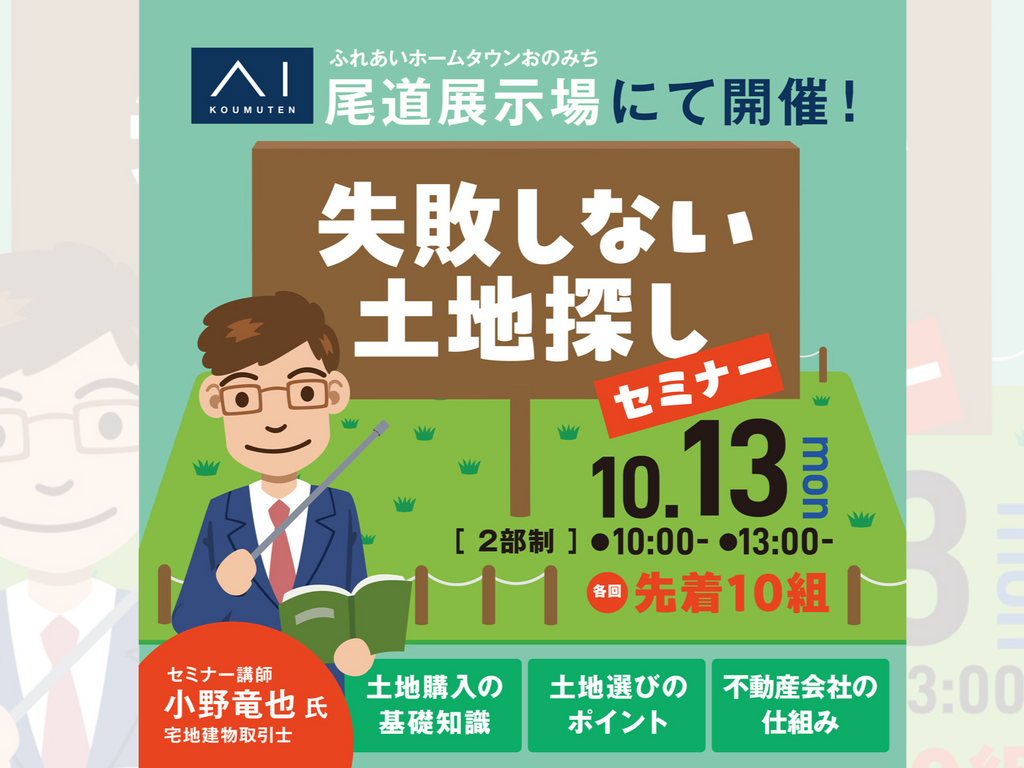 | タイトル | 尾道展示場 失敗しない!土地探しセミナー |