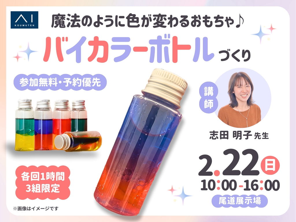 | タイトル | 尾道展示場 選ぶ色で印象が変わる!バイカラーボトルづくり |