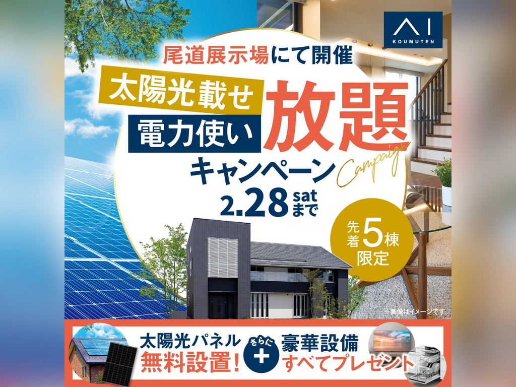 | タイトル | 尾道展示場 太陽光載せ放題&電力使い放題キャンペーン 来場予約 |