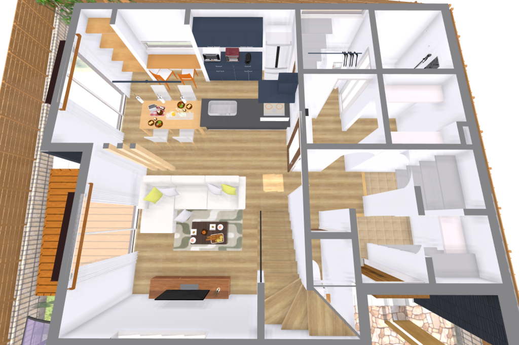1センチ単位の設計で「シンデレラフィット」を実現する ¨完全自由設計” と“たて” の空間を活かした「スキップフロア」「アイデア収納」でご家族の夢をかなえます。