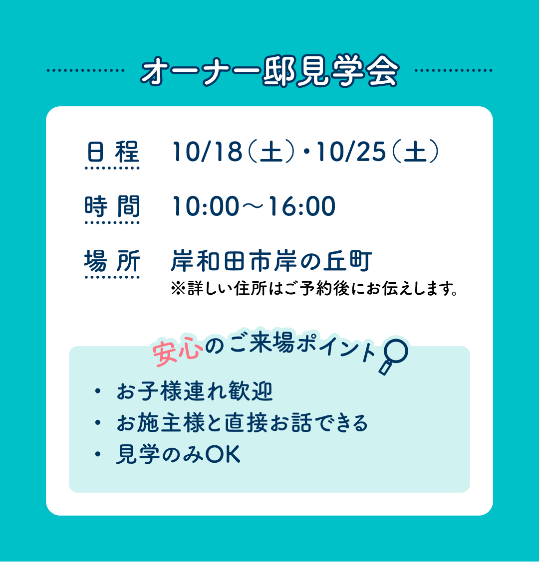 当日は泉佐野展示場へお越しいただき、現地にご案内させていただきます。