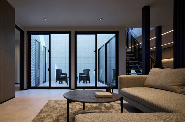 大きな窓からたっぷりと光が差し込む、明るく開放的な空間のインナーテラス。