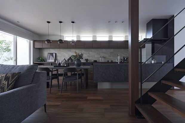 巾木を目立たないよう小さくしたり、ダウンライトの大きさを調整したり、フローリングの流れを変えたり…。ひとつひとつは細かい部分ではありますが、積み重なるとしっかり効果を発揮できるテクニックをたくさん取り入れました。