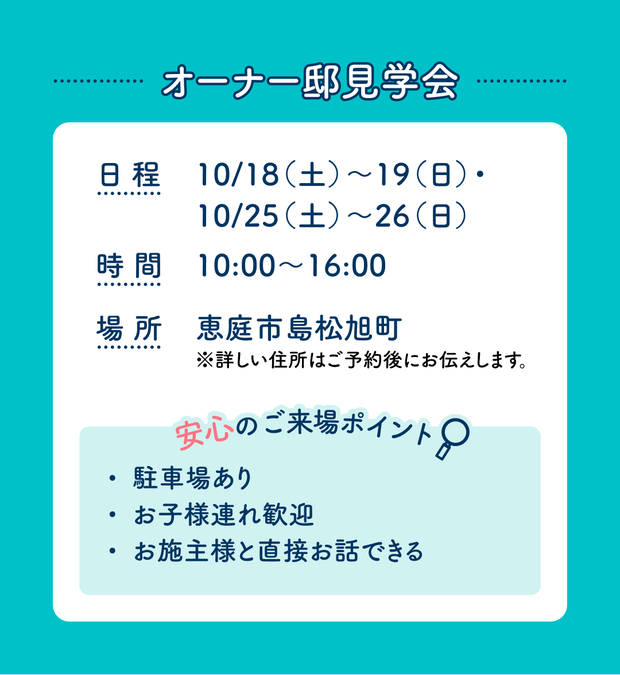 | タイトル | アイパーク苫小牧(複合型住宅展示場) 家族がつながる陽だまり平屋 オーナー様邸見学会 |