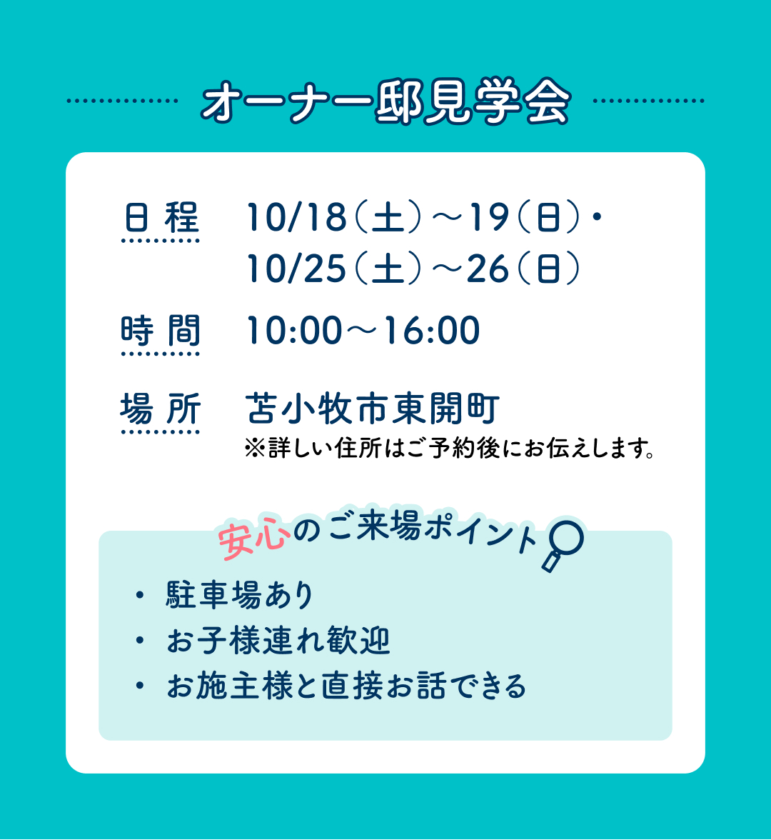 | タイトル | アイパーク苫小牧(複合型住宅展示場) 効率的な動線で暮らしが整う家 オーナー様邸見学会 |
