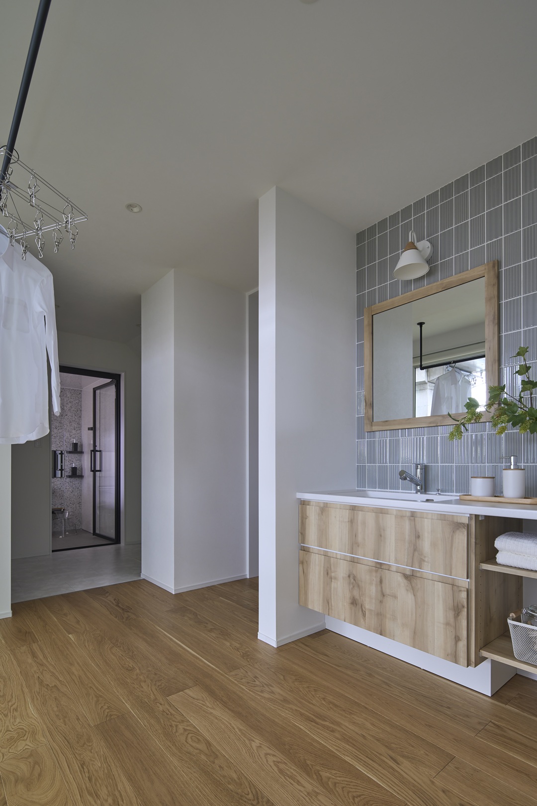 キッチンから水回りへとスムーズにつながる効率的な家事動線で、移動の手間を減らし家事を時短。毎日の暮らしにゆとりを生み出します。