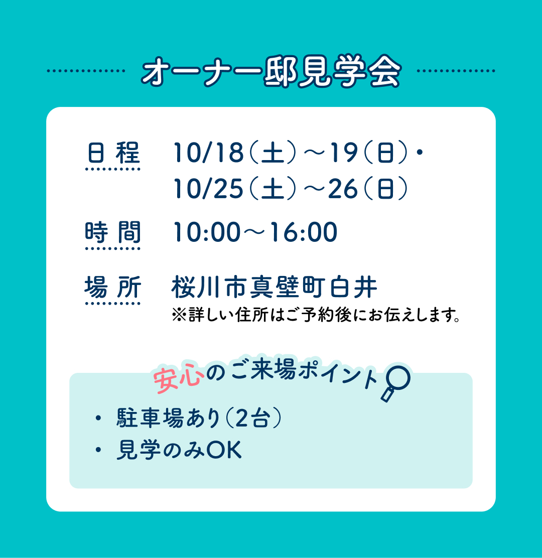 ※当日はつくば展示場へお越しいただき、現地にご案内させていただきます。