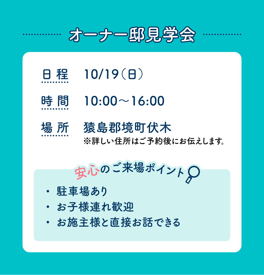| タイトル | 古河展示場 魅せる動線にこだわった家 オーナー様邸見学会 |