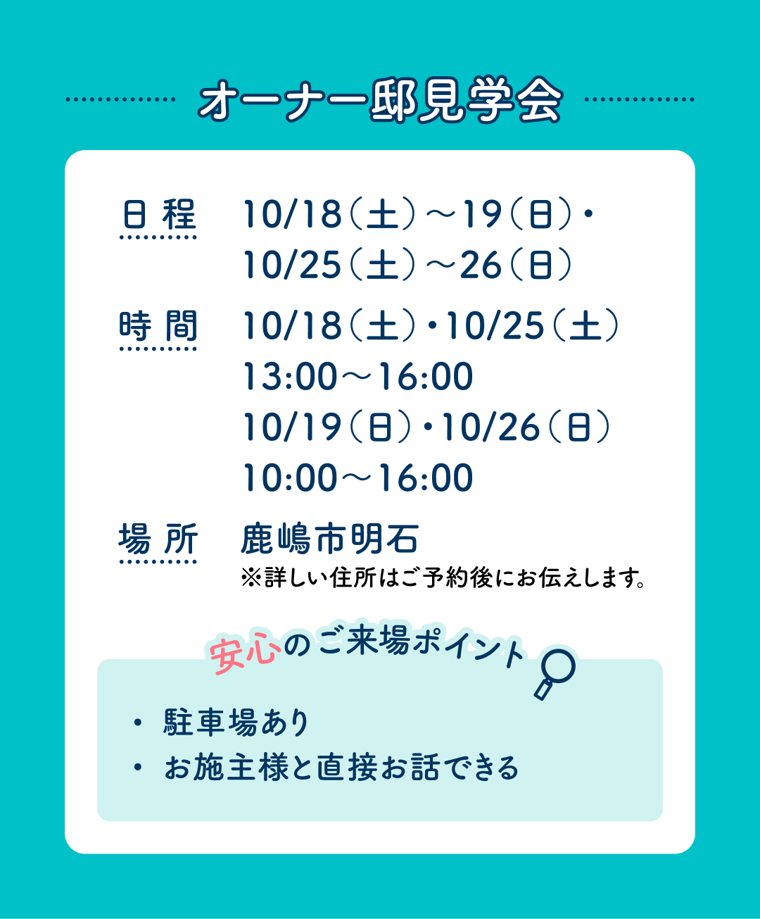 | タイトル | 鹿島展示場 勾配天井の広々LDKが魅力の家 オーナー様邸見学会 |