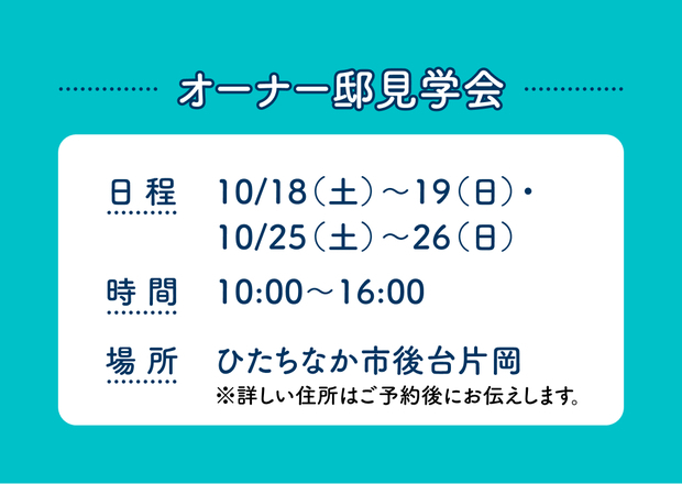 | タイトル | ひたちなか展示場 光溢れるLDKが落ち着く住まい オーナー様邸見学会 |