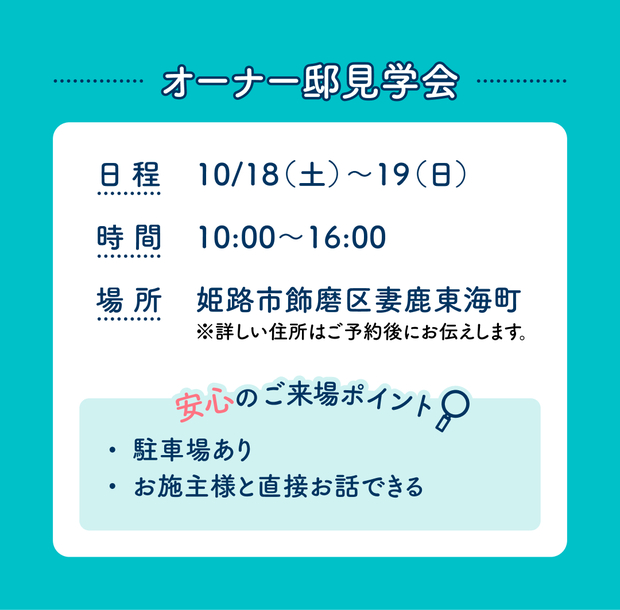※当日は加古川展示場へお越しいただき、現地にご案内させていただきます。