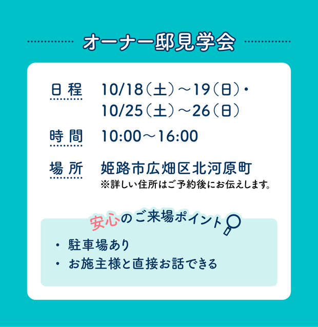 ※当日はアイパーク高砂(複合型住宅展示場)へお越しいただき、現地にご案内させていただきます。