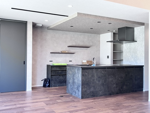 家づくりで譲れなかったのは「かっこいい平屋」にすること。キッチンは黒を基調にしたいと決めていました。