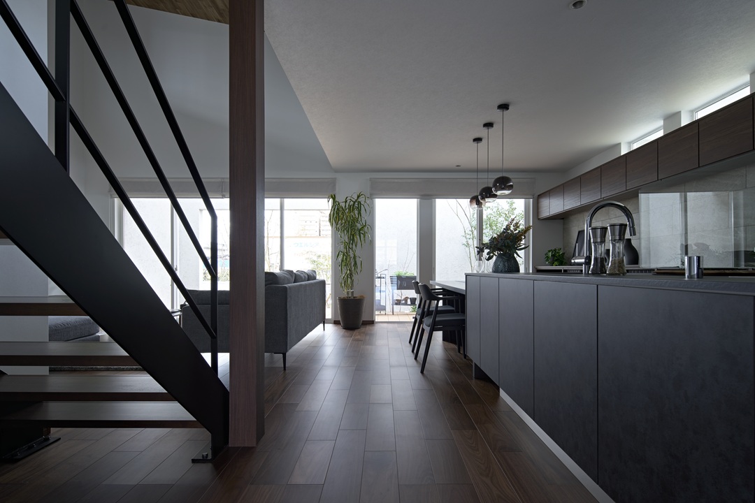 階段に採用したアイアン手摺りは、シンプルな中に上質なアクセントを添える存在✨空間全体をスタイリッシュに引き締めます。