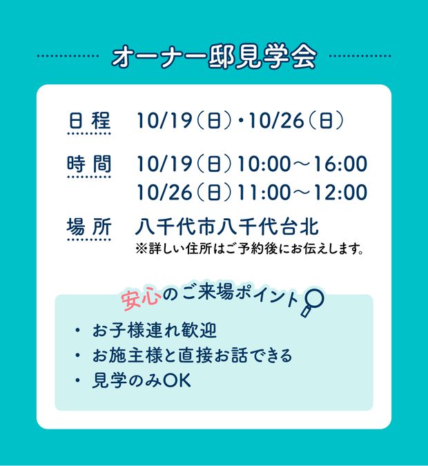 アイ工務店の『住まいの勉強会』は、オーナー邸・完成見学会・モデルハウスを見学できる年2回の期間限定特別イベントです!