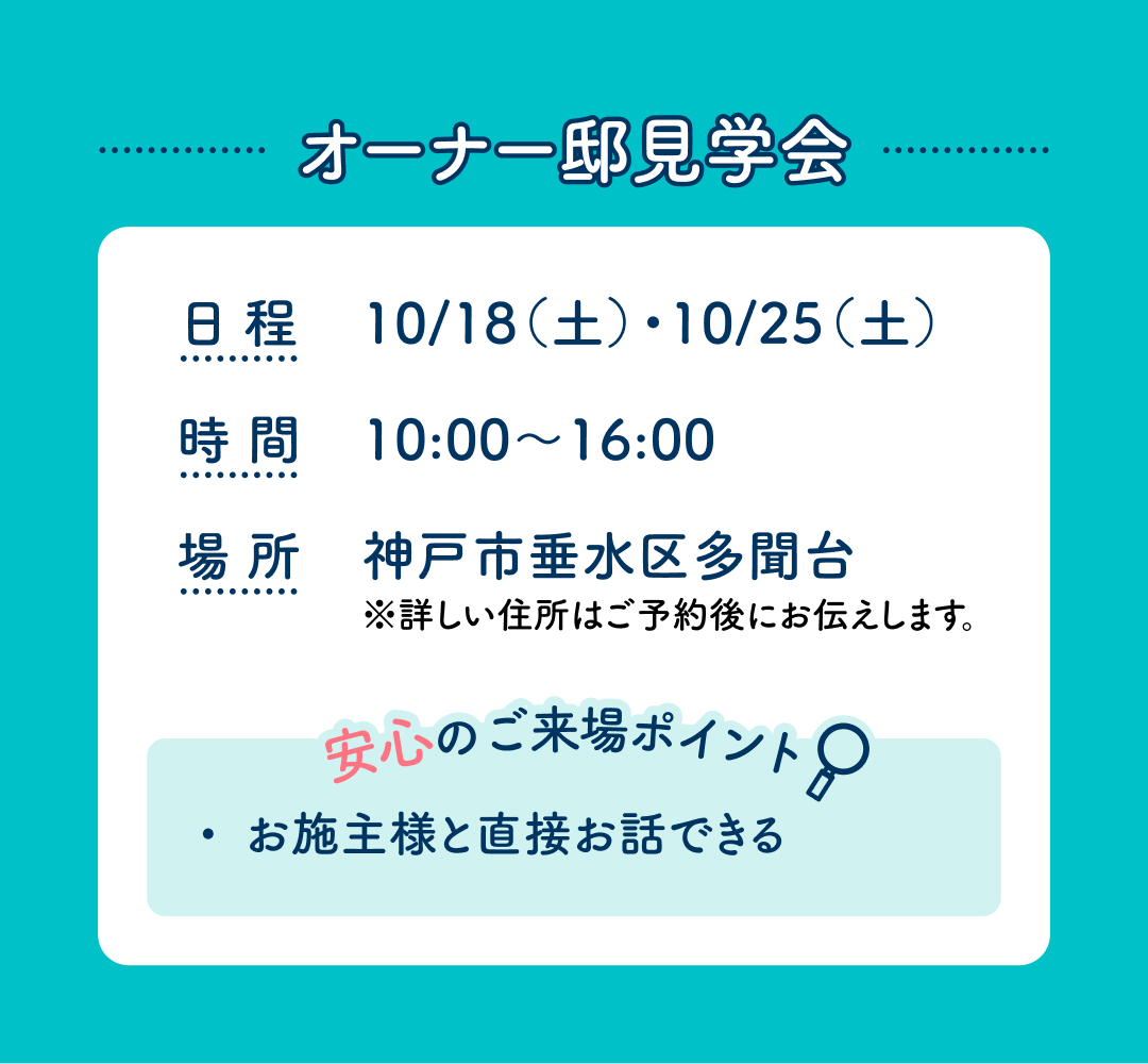 ※当日は西神展示場へお越しいただき、現地にご案内させていただきます。