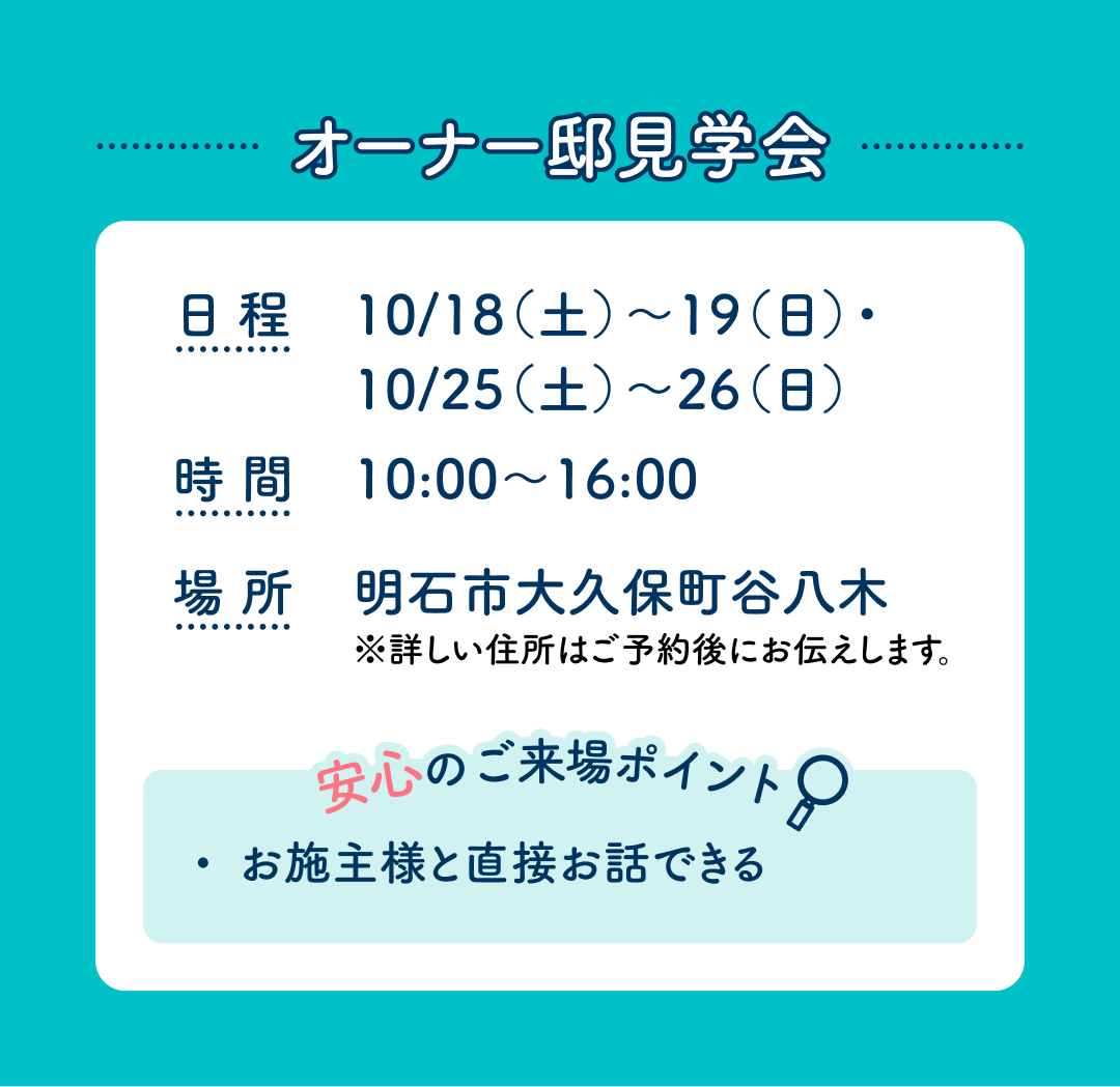 ※当日は明石展示場へお越しいただき、現地にご案内させていただきます。