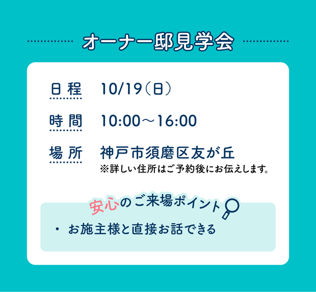 | タイトル | 西神展示場 土間収納のある収納力抜群の家 オーナー様邸見学会 |