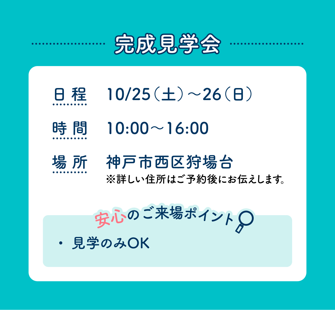 ※当日は西神展示場へお越しいただき、現地にご案内させていただきます。