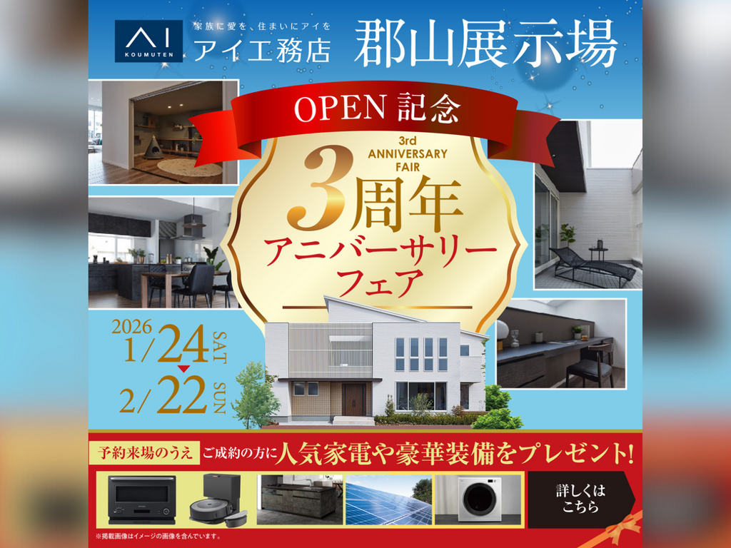 | タイトル | 郡山展示場 3周年記念アニバーサリーフェア 来場予約 |