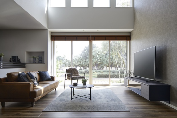 ハーフ吹抜けのリビングは、家族がどこにいてもつながりを感じられる安心の空間。やわらかな光と風が行き届き、心地よさとくつろぎを日常にもたらします。