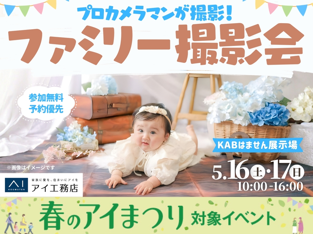 | タイトル | KABはません展示場 プロカメラマンが撮影!ファミリー撮影会 |
