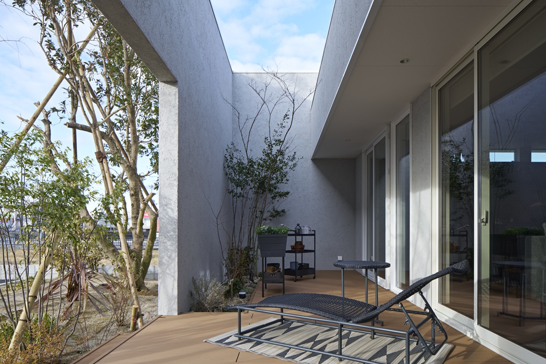 お施主様は深い軒のある家が以前から憧れだったそうで、それを設計に組み込みました。あとはインナーテラスですね。最初は室内と配置をずらした設計だったのですが、途中で室内からそのまま直線で出られるように変更しました。見た目もきれいになったし、開放感がより味わえるようになったと思います。