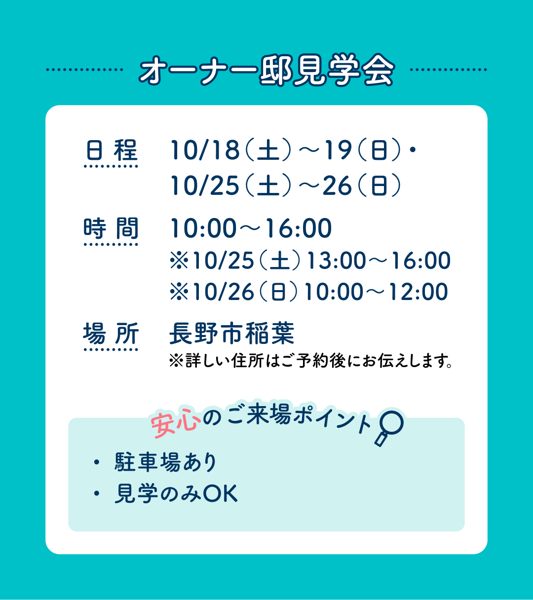 | タイトル | 長野中央展示場 将来を見据えた居心地の良い家 オーナー様邸見学会 |