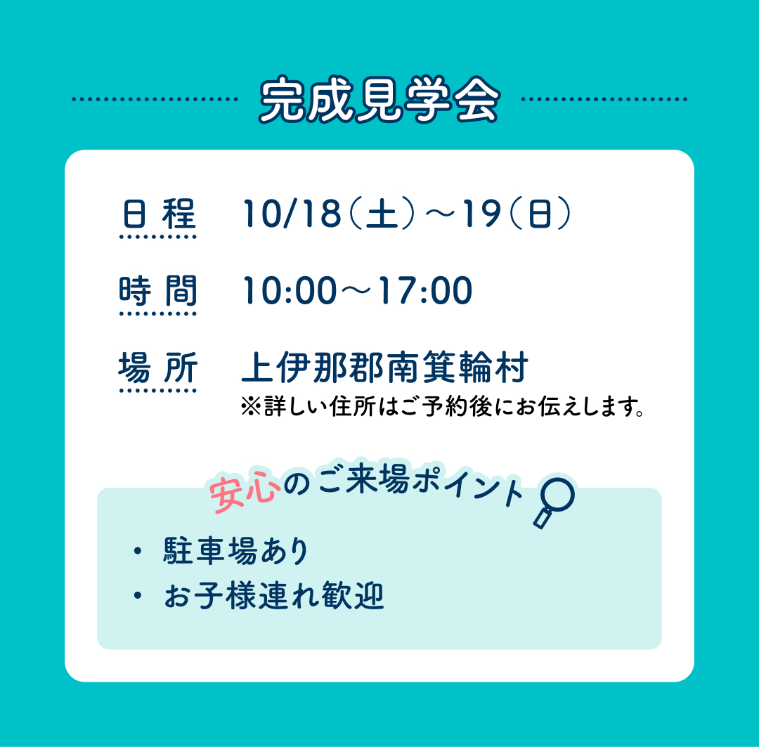 | タイトル | 伊那展示場 スキップフロアで空間を活かした家 完成見学会 |