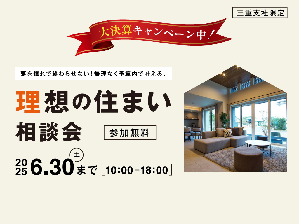 | タイトル | 津展示場 予算内で叶える!理想の住まい相談会【豪華特典あり】 |