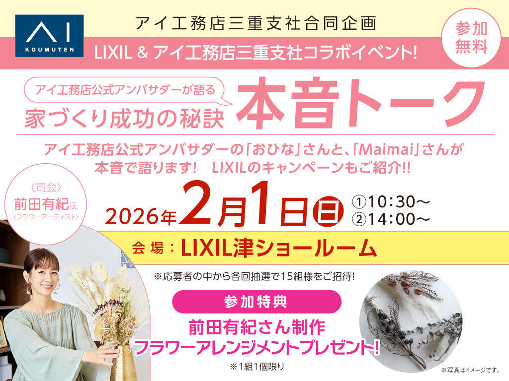 三重県津市 公式アンバサダーが語る 家づくり成功の秘訣 本音トークイベント 来場予約ページ
