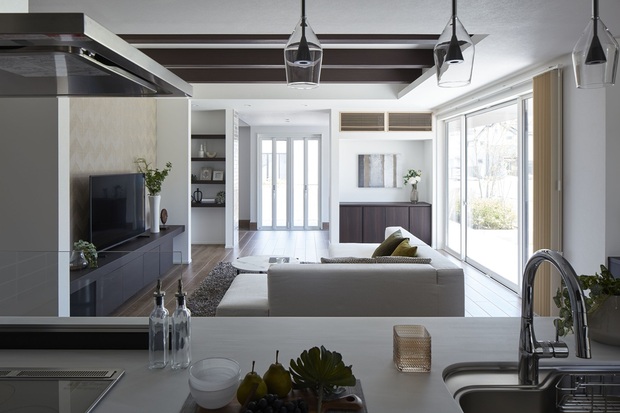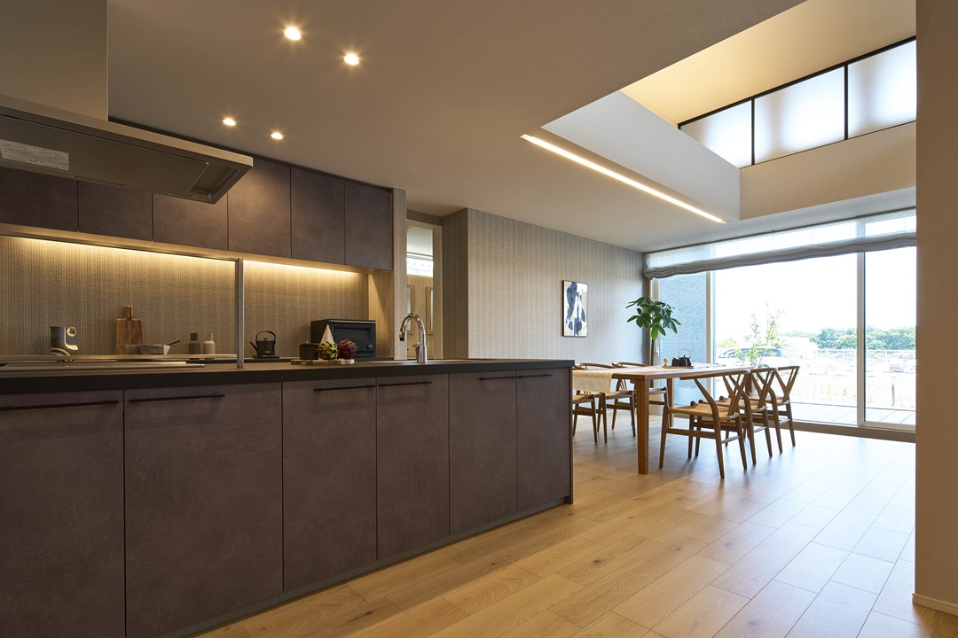生活感を隠し、光と素材で心安らぐ時間を生み出します。