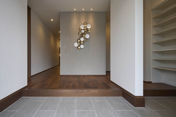 ゲストを迎えるメインの玄関とは別に、家族が出入りするためのファミリー玄関を採用。