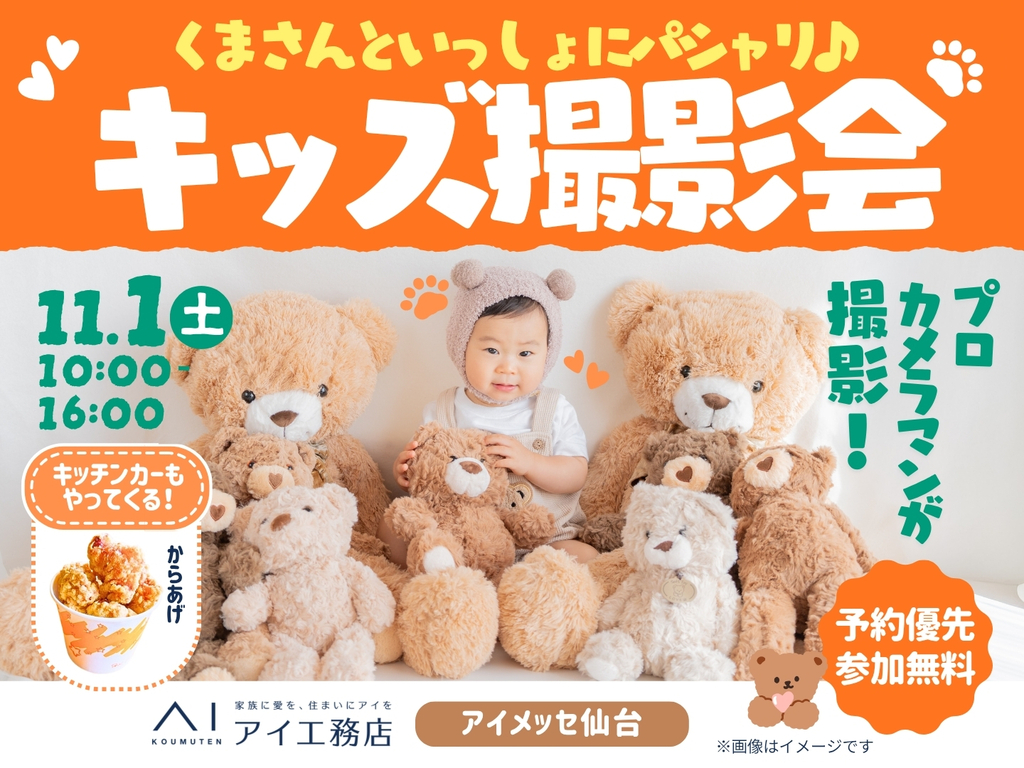 タイトル | アイメッセ仙台(複合型住宅展示場) プロのカメラマンが撮影!キッズ撮影会🐻✨ |