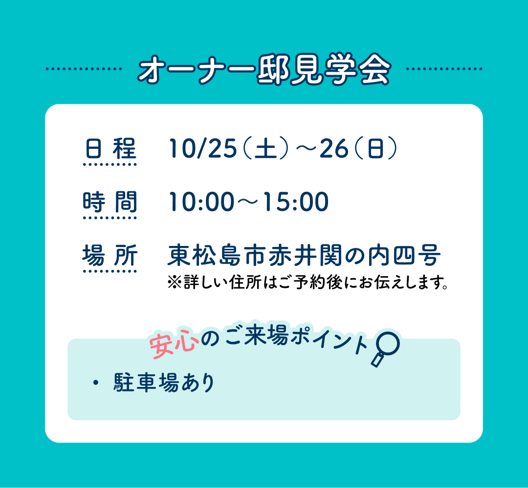 アイ工務店の『住まいの勉強会』は、オーナー邸・完成見学会・モデルハウスを見学できる年2回の期間限定特別イベントです!