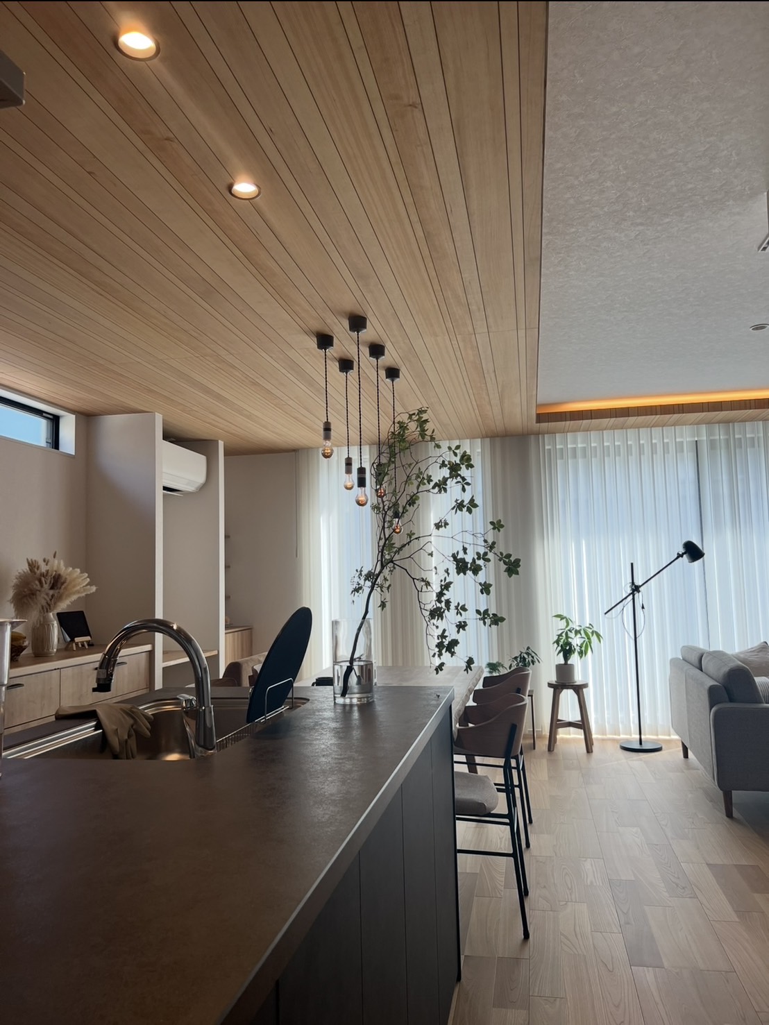 木目天井はInstagramで見た他社さんの施工事例に憧れを持っていらっしゃったので、「どこまで広げるか」「サッシの幅はどう見えるか」といった細かい部分まで一緒に検討しました。