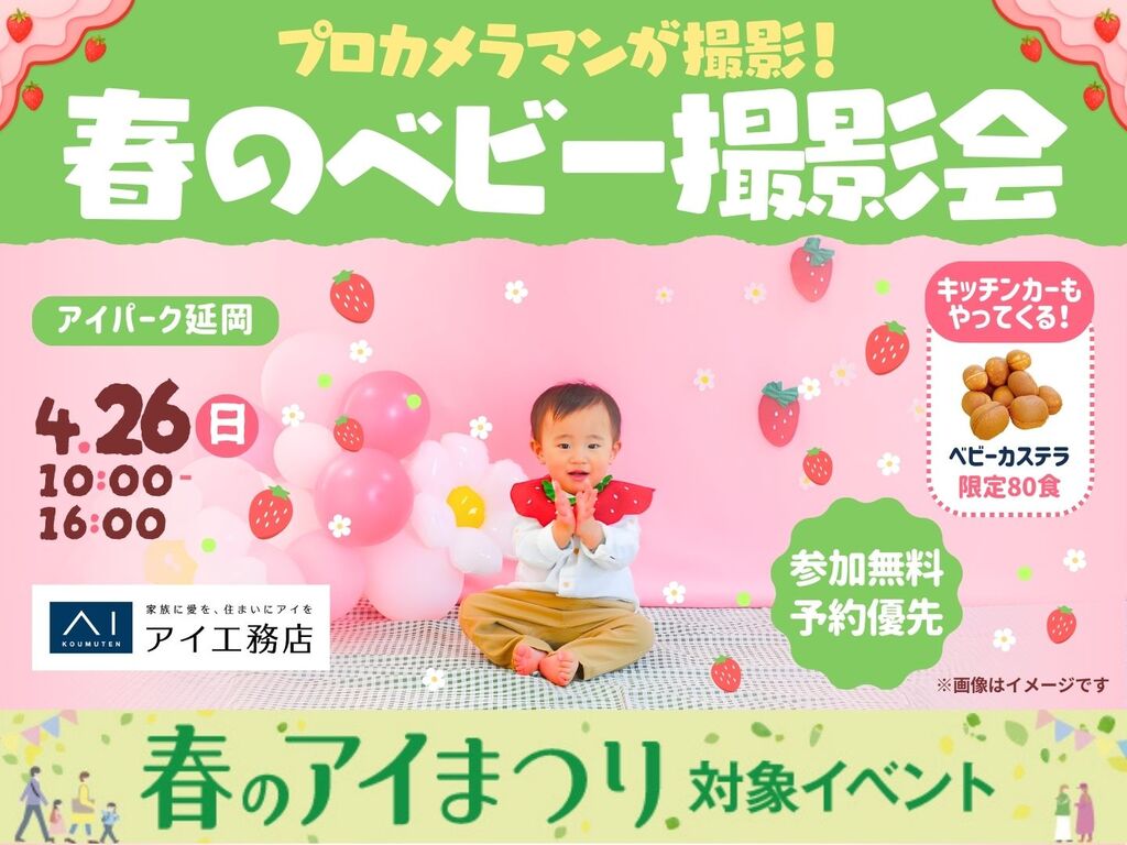 | タイトル | アイパーク延岡(複合型住宅展示場) プロカメラマンが撮影!春のベビー撮影会 |