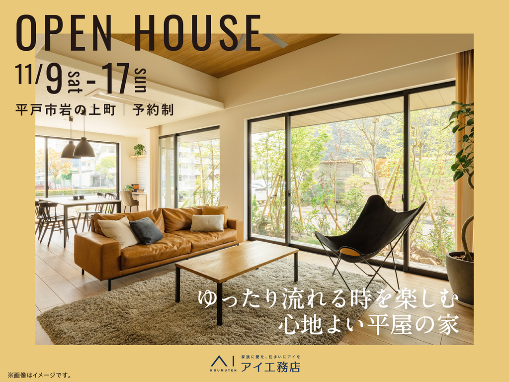 | タイトル | させぼ展示場 《平戸市岩の上町》ゆったり流れる時を楽しむ 心地よい平屋の家 完成見学会 |