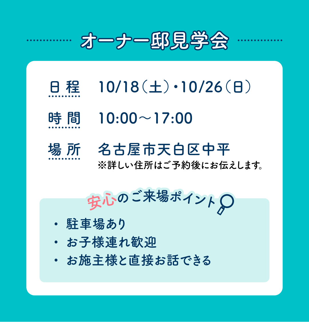 アイ工務店の『住まいの勉強会』は、オーナー邸・完成見学会・モデルハウスを見学できる年2回の期間限定特別イベントです!