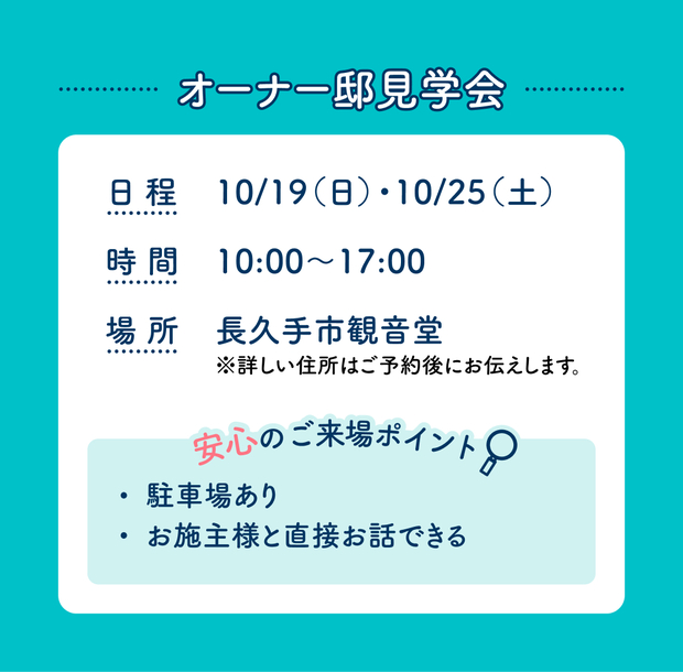 | タイトル | 長久手展示場 大きな吹抜けLDKが自慢の家 オーナー様邸見学会 |