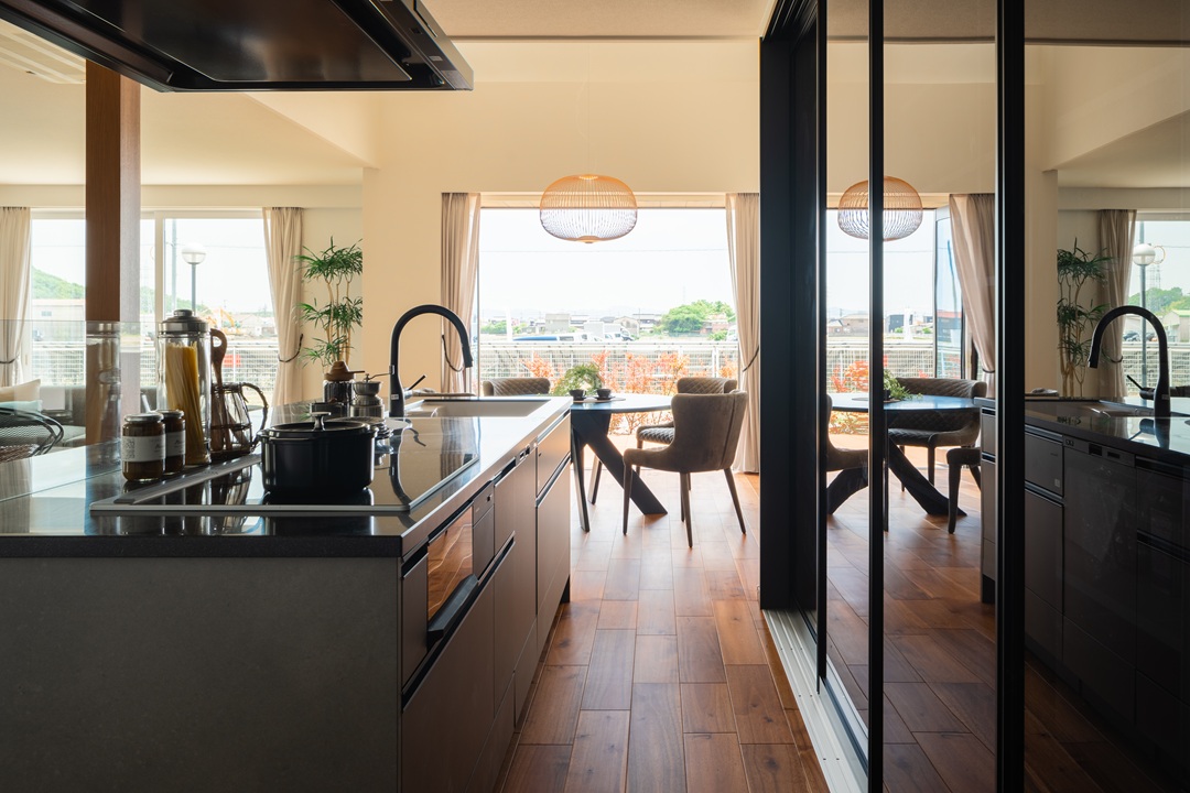 キッチン・ファミリークローゼット・洗面所を効率よく結ぶ動線設計で、移動のムダを減らし家事がスムーズに。