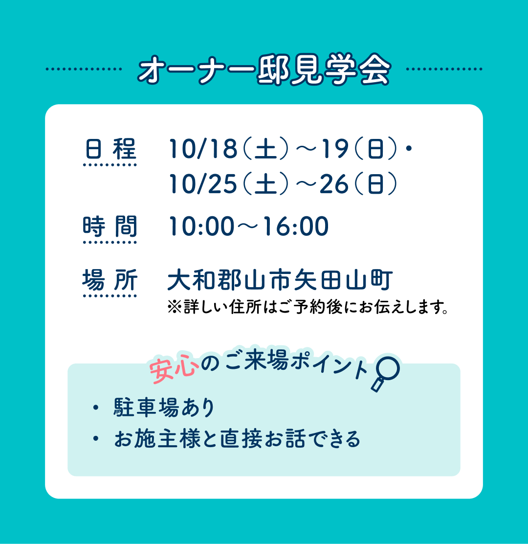 当日は大和郡山展示場へお越しいただき、現地にご案内させていただきます。
