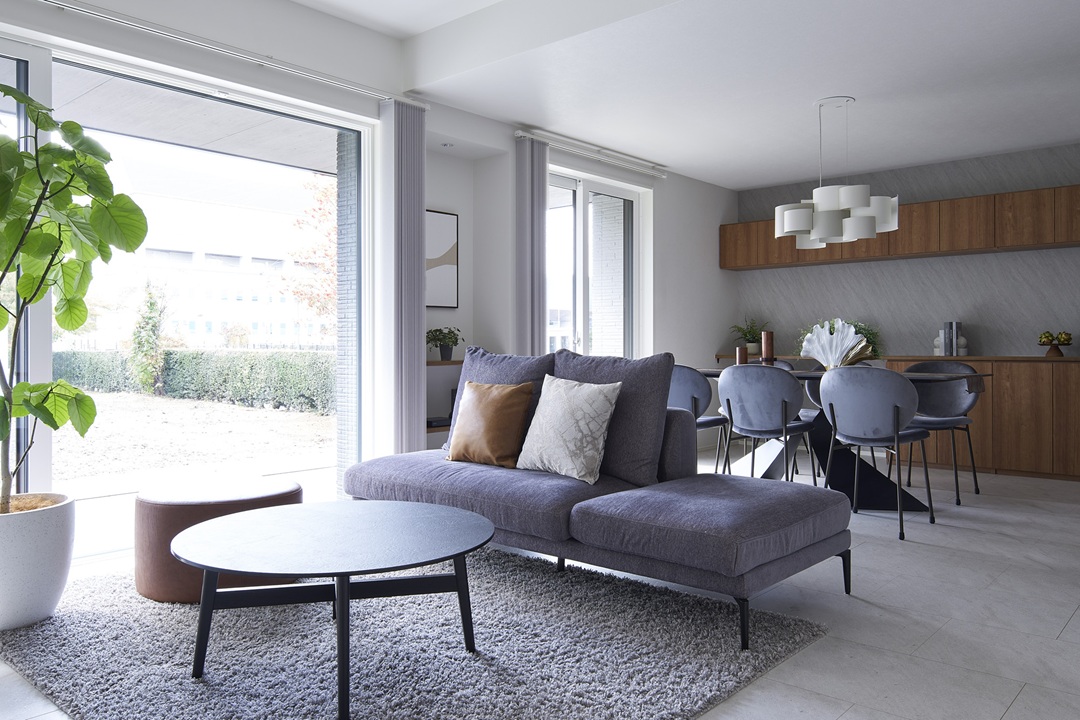 大きな窓から光があふれるリビングは、一日中明るく心地よい空間。