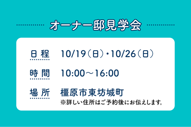 ※当日は橿原第一展示場へお越しいただき、現地にご案内させていただきます。