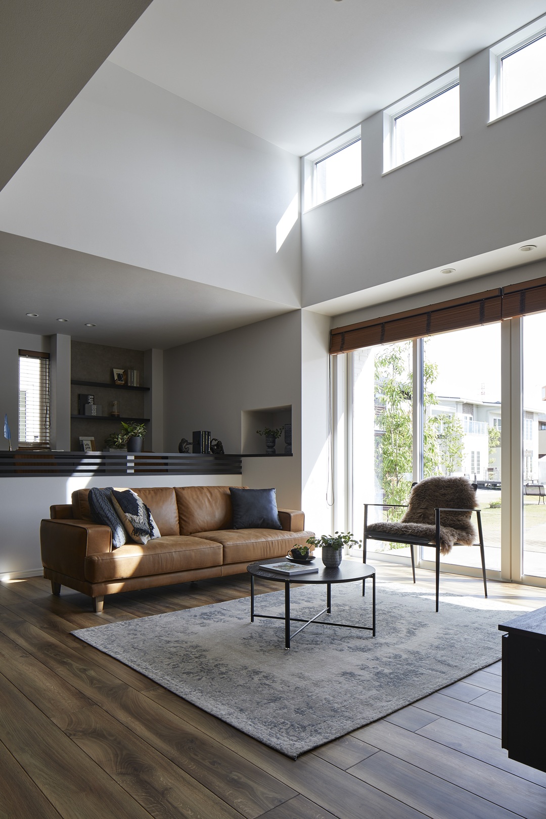 吹き抜けと大きな窓から差し込む光が、明るく快適な暮らしを演出します😊