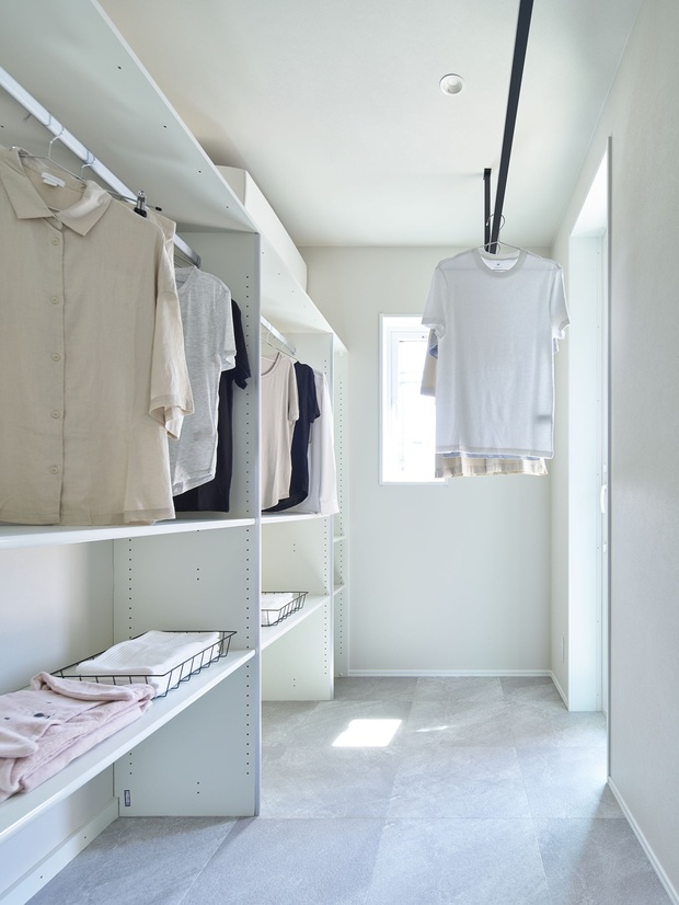 洗面室とつながるランドリールームは大きな窓からの日差しでよく乾きます。