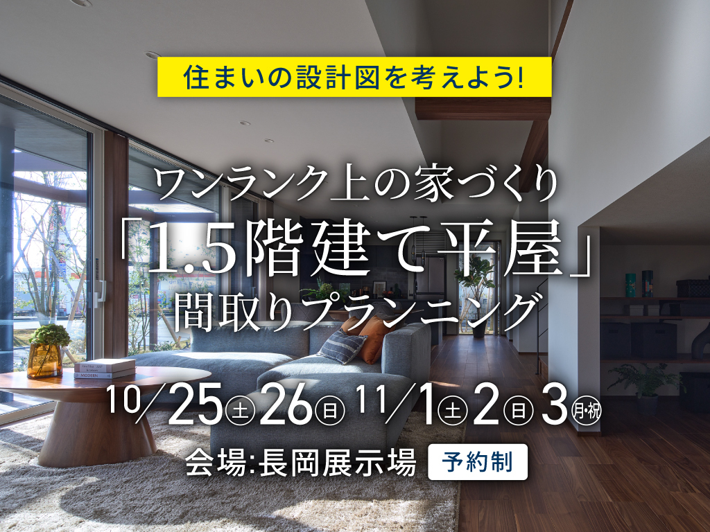 タイトル | 長岡展示場 「1.5階建て平屋」間取プランニング |